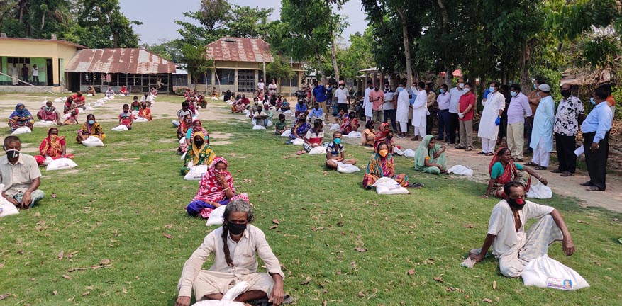 পরে প্যাকেটে করে চাল, ডাল, লবন, আলুসহ নিত্য প্রয়োজনীয় পন্য সদর ইউনিয়নের বিভিন্ন এলাকার কর্মহীন পরিবারের বাড়ি পৌছে দেয়া হয়।
