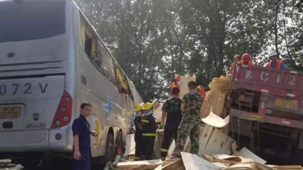 চীনের চাংচুং-শেনজেন মহাসড়কে বাসের সঙ্গে ট্রাকের সংঘর্ষে অন্তত ৩৬ জন নিহত হয়েছেন। এ সময় আহত হয়েছেন আরও ৩৬ জন। শনিবার সকালে দেশটির পূর্বাঞ্চলীয় জিয়াংসু প্রদেশে এই দুর্ঘটনা ঘটে। খবর রয়টার্সের