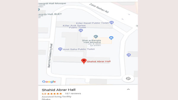 ছাত্রলীগের নেতাকর্মীদের বর্বর নির্যাতনে নিহত হওয়া বাংলাদেশ প্রকৌশল বিশ্ববিদ্যালয়ের(বুয়েট) তড়িৎ কৌশল বিভাগের দ্বিতীয় বর্ষের শিক্ষার্থী আবরার ফাহাদের নামে শেরেবাংলা হলের নামকরণ করা হয়েছে। গুগলের মানচিত্রে সার্চ দিলে এখন এমনটাই দেখা