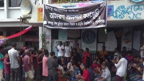 গোপালগঞ্জের বঙ্গবন্ধু শেখ মুজিবুর রহমান বিজ্ঞান ও প্রযুক্তি বিশ্ববিদ্যালয়ের (বশেমুরবিপ্রবির) শিক্ষার্থীরা উপাচার্যের পদত্যাগের দাবিতে আমরণ অনশন কর্মসূচি পালন করছে। সোমবার সকাল থেকে তারা বিশ্ববিদ্যালয়ের প্রশাসনিক ভবনের সামনে অবস্থান নিয়ে আমরণ